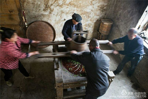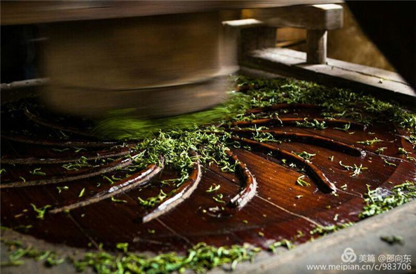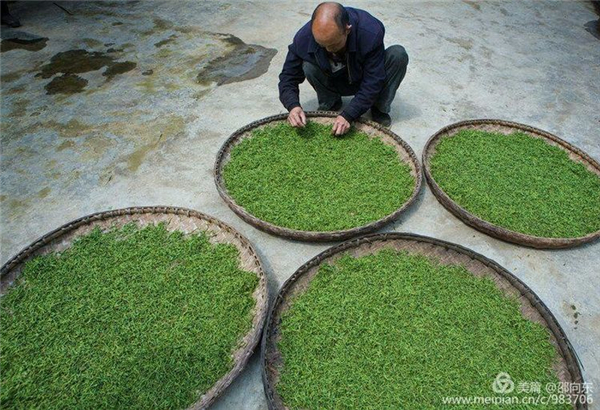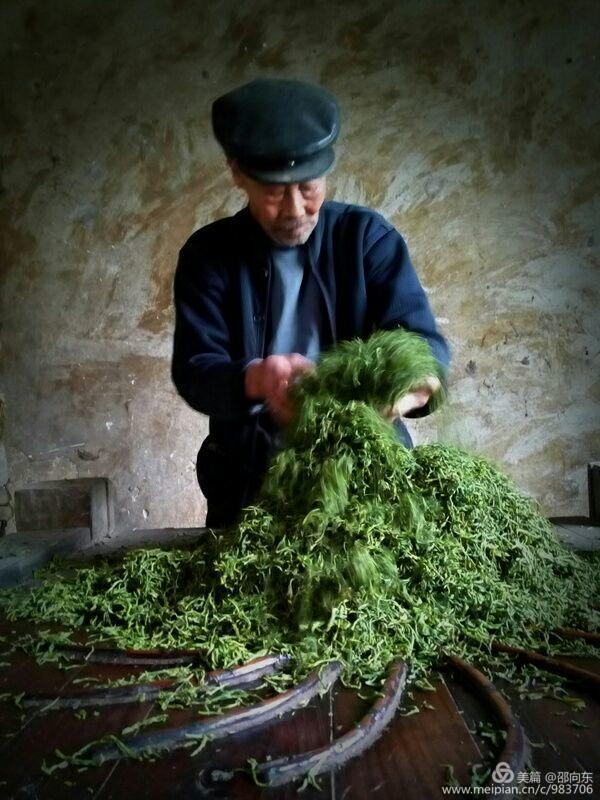 一群群花紅柳綠的采茶人,依著茶山一字排開(kāi),嬉笑逗樂(lè)間兩手如飛梭,一片片毛尖芽頭便攥入手中,落入竹簍,其穩(wěn)、準(zhǔn)、快、靈如同魔術(shù)。初產(chǎn)之春獨(dú)早銀針每斤芽頭約四萬(wàn)枚,左右誤差不出百余,據(jù)說(shuō)這明前銀針唯有這十七、八的山妹子親手采摘,制出的茶才別有一番甜香之氣,這也是傳統(tǒng)紫陽(yáng)貢茶奧妙之所在。