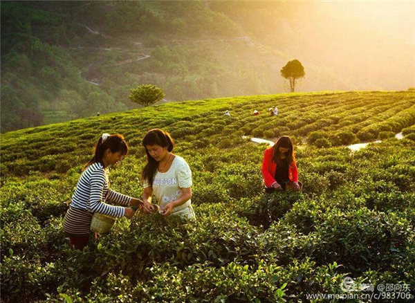 日上三竿,帶著新采摘的嫩葉走進(jìn)茶農(nóng)新居,好客主人必是要捧出好茶招待,掬一捧屋后的山泉水,燒沸晾至八九成熱,水壺高高提起,水注一線,向著客人鳳凰三點(diǎn)頭,茶在熱流中凡翻滾,被濃縮收藏的春意也在激蕩中被喚醒,輕緩的舒展著腰肢,一枚枚嫩芽恢復(fù)了清純,如同天鵝湖畔的仙子隨杯中的水流旋轉(zhuǎn)跳動(dòng),直到靜水曲終,那蘊(yùn)藏在葉脈芽尖的漫山春意亦緩緩釋放出來(lái)。押上一口一縷清香沁入肺腑,那是女兒十八春的味道,任你墻高門(mén)緊,早已飄出十里八鄉(xiāng)了,這樣的季節(jié)怎能不上茶山不踏春呢?