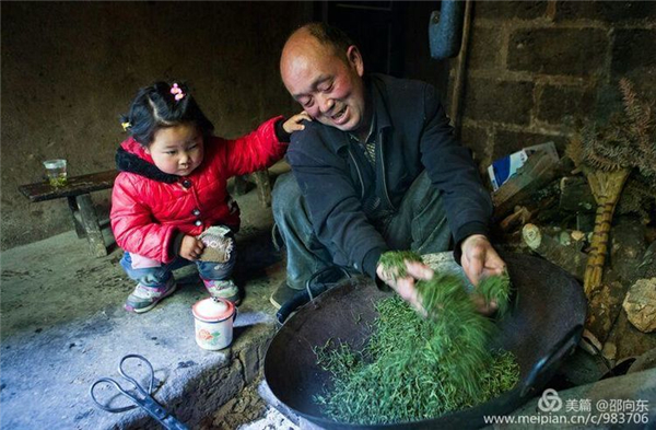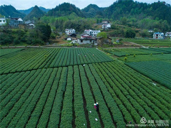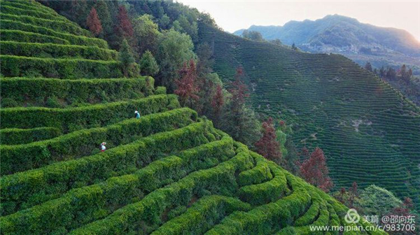 如今的紫陽(yáng),江還是那條江,梁還是那道梁,茶卻是越來(lái)越精致香純了,每到三月嫩芽初發(fā),江霧從水面慢慢升騰,毛茸茸的芽尖頂著露珠在晨光中閃耀,竹林掩映著白墻黛瓦,一縷炊煙合著柴雞的打鳴懶散飄過(guò),采茶的姑娘腰系小竹簍,三五結(jié)伴在茶山穿行,人未見(jiàn)聲先來(lái),嫩綠的樹(shù)林間搖擺著水蛇腰,老人說(shuō)那是好山好水、好茶好飯養(yǎng)出的西妹兒。