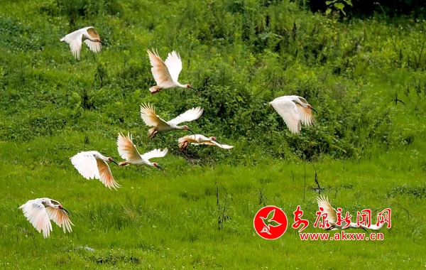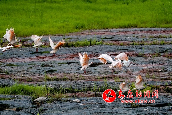 7月18日上午,22只野生朱鹮在漢陰月河草灘出現(xiàn)。據(jù)當?shù)厝私榻B,近期就已發(fā)現(xiàn)十幾只朱鹮在此棲息,當日朱鹮數(shù)量有所增加。據(jù)悉,我市自然生態(tài)環(huán)境不斷得到保護后,非常適宜朱鹮的生存,近幾年來已陸續(xù)發(fā)現(xiàn)朱鹮來到我市漢江水域和部分縣域小河覓食。 皮勇維 攝vvc安康新聞網(wǎng)