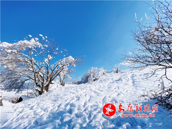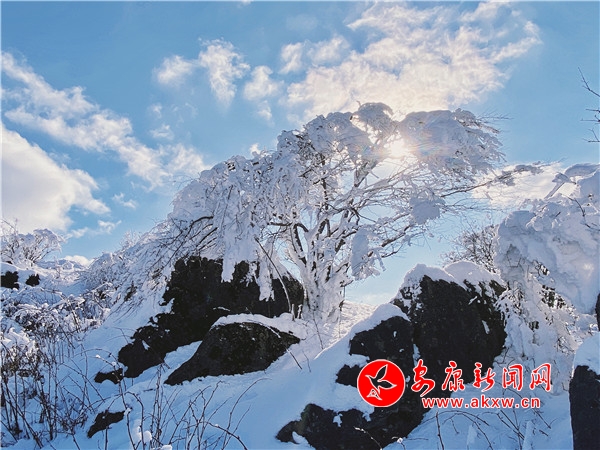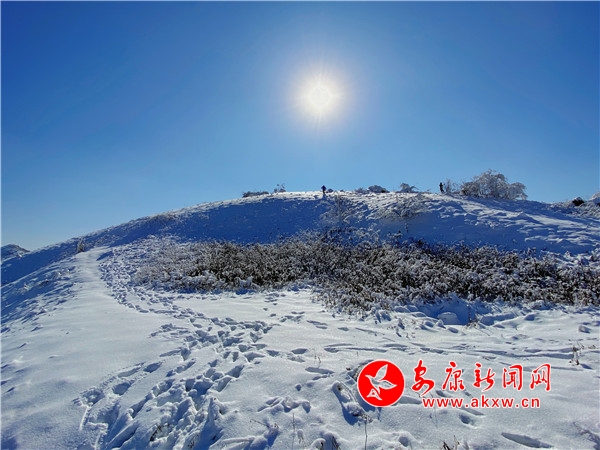 陽(yáng)光透過(guò)樹縫,灑向白茫茫的草甸,萬(wàn)物潔凈如新。站在草甸之上,環(huán)顧四周,美景盡收眼底,山舞銀蛇襯之藍(lán)天雪地,讓人嘆為觀止。