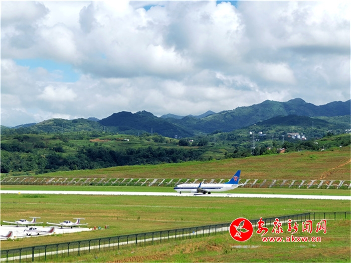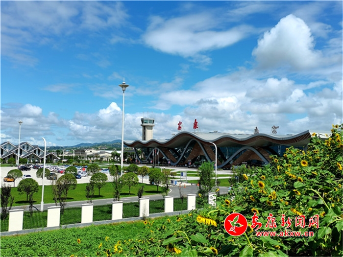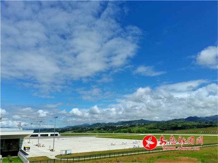 藍(lán)天白云下美麗的安康機(jī)場(chǎng)