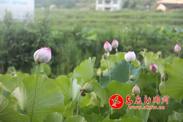 荷葉碧綠,荷花盛開。在七月驕陽的照耀下,伴隨著鳥叫和蟬鳴,漢濱區(qū)沈壩鎮(zhèn)花紅村的灼灼荷花如期而至,與美麗鄉(xiāng)村形成一道靚麗的獨特風景。(鄭時根 攝)zei安康新聞網