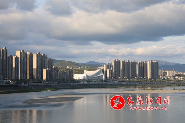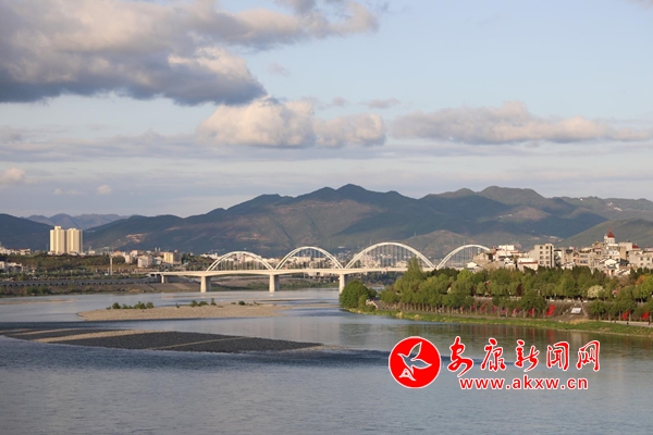 節(jié)逢清明,雨霽初晴。落日熔金,清江如練。天藍(lán)若海,流云似鯨。畫(huà)中城,城中畫(huà),兩岸青山翠欲滴 ,春色滿城等你來(lái)。ㄓ浾 劉淵) fUE安康新聞網(wǎng)