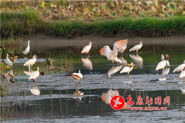 近日,有攝影愛好者在漢陰縣雙乳鎮(zhèn)千畝荷塘景區(qū)拍到50余只朱鹮的曼妙身影。他們時(shí)而悠閑覓食,時(shí)而閑庭散步,時(shí)而展翅高飛,潔白的羽毛,艷紅的頭冠和黑色的長(zhǎng)嘴,成為秋日里一道靈動(dòng)的風(fēng)景。