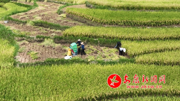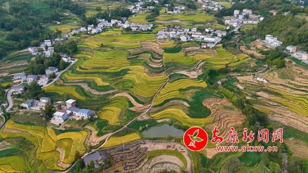 金秋時(shí)節(jié),漢陰鳳堰梯田的1.2萬(wàn)畝連片水稻迎來(lái)了豐收季,蜿蜒盤(pán)旋的金黃色線條從山腳盤(pán)繞至山腰,層層疊疊的稻田與整潔的村莊、蜿蜒的道路、遠(yuǎn)方的青山相映成趣,美不勝收。農(nóng)戶們也搶抓晴好天氣,確保顆粒歸倉(cāng),勤勞的鄉(xiāng)親們穿梭在稻田中,構(gòu)成了一幅祥和而廣闊的秦巴山區(qū)農(nóng)耕文明美麗畫(huà)卷。(通訊員 文婷 熊樂(lè))SLH安康新聞網(wǎng)