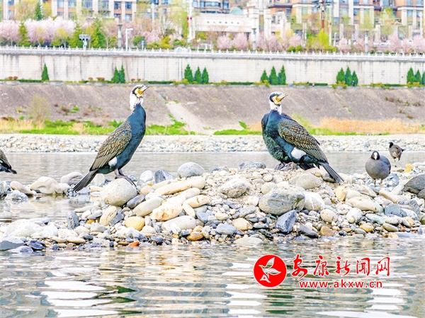 春日陽光下,漢江邊迎來一群水鳥。它們有的閉目養(yǎng)神,有的梳理羽毛,有的呆呆看著遠(yuǎn)方,為這片江水增添了無盡的活力。近年來,我市持續(xù)推進(jìn)漢江水質(zhì)保護(hù)工作,清澈透明的水質(zhì)吸引了越來越多的普通秋沙鴨、白骨頂雞、蒼鷺、鴛鴦等各種水鳥在這里棲息,給漢江增添了一道亮麗的風(fēng)景線。高潔 攝 TQV安康新聞網(wǎng)