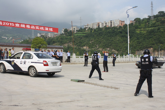 7月23日,旬陽(yáng)縣公安局在102省道開(kāi)展“查緝毒品”實(shí)戰(zhàn)演練。“各小組注意:接110通報(bào),有一輛黑色無(wú)牌現(xiàn)代小轎車(chē),車(chē)上有三名男子,可能攜帶毒品,從白柳鎮(zhèn)……