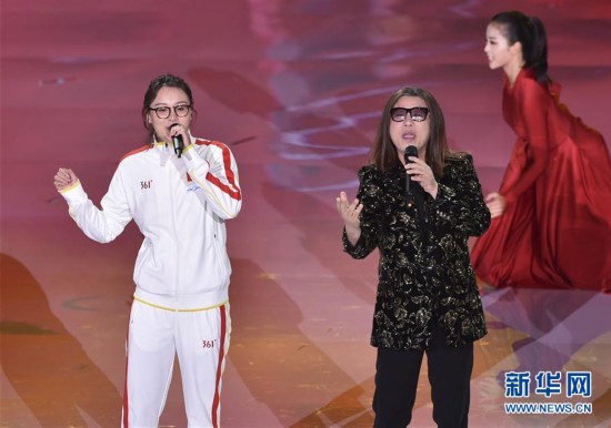 9月8日,游泳運(yùn)動(dòng)員傅園慧(左)和歌手郭峰在閉幕式上演唱。 當(dāng)日,第十三屆全運(yùn)會(huì)在天津閉幕。 新華社記者岳月偉攝KuH安康新聞網(wǎng)