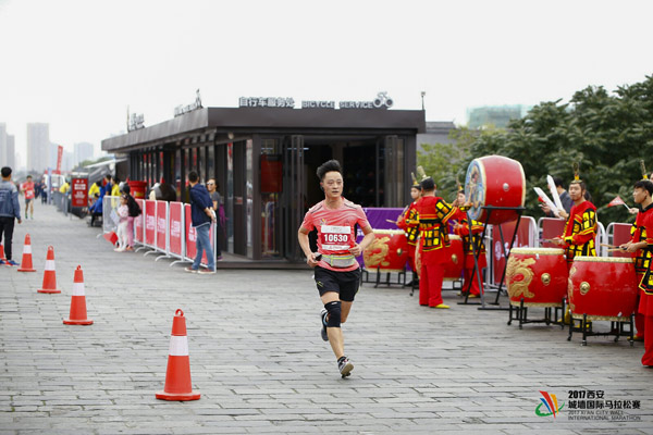 人民網北京9月11日電 2017西安城墻國際馬拉松賽于昨日上午8:00鳴槍開賽。作為世界唯一將賽道設置在完整城墻之上的馬拉松賽事,城墻馬自舉辦以來就備受廣大跑友的關注。今年亦是如此,來自美國、澳大利亞、法國、日本等13個國家和地區(qū)的3000名運動員齊聚古城墻,共同見證了這場歷史文化與體育競技相融合的跑步盛典。