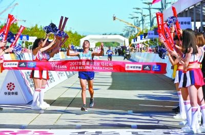 埃塞俄比亞選手貝耶妮以2小時(shí)27分44秒奪得女子組冠軍。