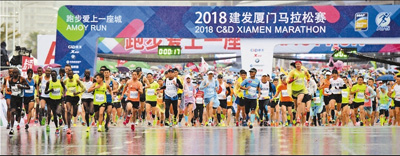 從1月5日夜里開(kāi)始持續(xù)數(shù)日的降雨,使得福建廈門(mén)的氣溫由此前的25攝氏度降了10攝氏度左右。1月7日7時(shí)30分,當(dāng)2018年廈門(mén)馬拉松鳴槍起跑的時(shí)候,這場(chǎng)降雨則有了愈演愈烈之勢(shì)。天氣變化不僅給參賽選手制造了很多困難,也對(duì)賽事的順利進(jìn)行提出了挑戰(zhàn)。不過(guò),作為國(guó)際田聯(lián)的金標(biāo)賽事,廈門(mén)馬拉松用貼心周到的服務(wù)和賽事創(chuàng)新交出了答卷。