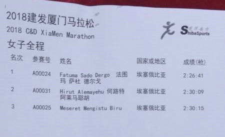 2018年廈門馬拉松雨中開跑埃塞俄比亞選手包攬前三