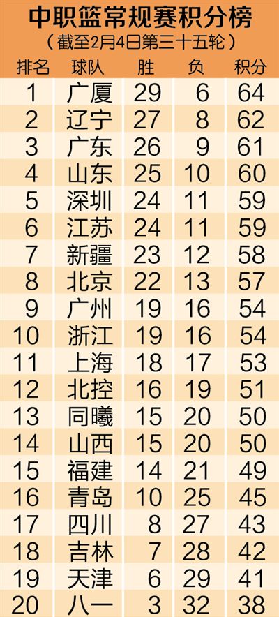 2017—2018賽季中國(guó)男籃職業(yè)聯(lián)賽(CBA)常規(guī)賽還剩3輪,暫居積分榜首位的浙江廣廈隊(duì)目前領(lǐng)先第二名遼寧隊(duì)兩個(gè)勝場(chǎng),處在沖擊常規(guī)賽冠軍更有利的位置;而圍繞季后賽席位的爭(zhēng)奪更趨白熱化,3支球隊(duì)為最后兩個(gè)席位發(fā)起最后的沖刺。
