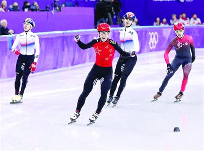 一輪一輪拼,武大靖為中國(guó)體育代表團(tuán)奪得在本屆冬奧會(huì)上的首枚金牌。 /新華社