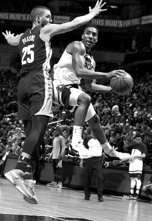 蒂格(右)拿下全場最高的25分,卻無法挽救森林狼的敗局。