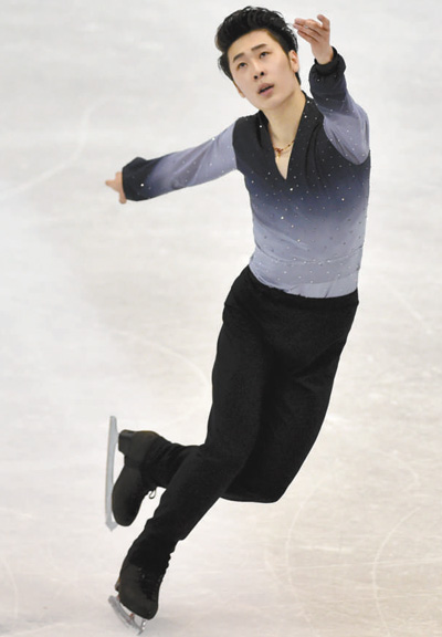 | 1月27日,金博洋在四大洲花樣滑冰錦標(biāo)賽男子單人滑比賽中。 |