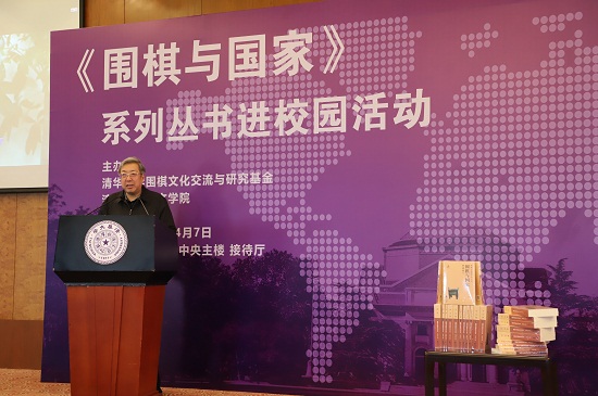 人民網(wǎng)北京4月8日電 昨天上午,“《圍棋與國(guó)家》系列叢書(shū)進(jìn)校園”活動(dòng)在清華大學(xué)中央主樓舉行,叢書(shū)作者、中國(guó)圍棋協(xié)會(huì)主席林建超,清華大學(xué)校務(wù)委員會(huì)副主任謝維和,本書(shū)編審指導(dǎo)、北京圍棋基金會(huì)理事長(zhǎng)華以剛,清華校友、原國(guó)稅總局副局長(zhǎng)許善達(dá),北大校友、全國(guó)人大常委會(huì)預(yù)算工作委員會(huì)原副主任黃建初,北大校友、中國(guó)國(guó)際友好聯(lián)絡(luò)會(huì)原副會(huì)長(zhǎng)藍(lán)曉石,中國(guó)財(cái)經(jīng)出版?zhèn)髅郊瘓F(tuán)經(jīng)濟(jì)科學(xué)出版社總編輯李洪波,叢書(shū)項(xiàng)目推薦人、清華大學(xué)馬克思主義學(xué)院原常務(wù)副院長(zhǎng)林泰,清華大學(xué)人文學(xué)院哲學(xué)系教授、圍棋基金理事長(zhǎng)韓立新,清華圍棋基金副理事長(zhǎng)呂賓,北京大學(xué)考古文博學(xué)院教授齊東方等,以及清華大學(xué)、北京大學(xué)等高校師生和媒體記者共近百人參加了活動(dòng)。