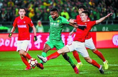 昨晚(22日),中超第七輪一場焦點戰(zhàn)在工人體育場的蒙蒙細(xì)雨中進(jìn)行。面對兩球落后的不利局面,北京中赫國安隊?wèi){借外援奧古斯托和巴坎布終場前的進(jìn)球,主場2比2逼平衛(wèi)冕冠軍廣州恒大隊,艱難進(jìn)賬1分。