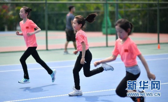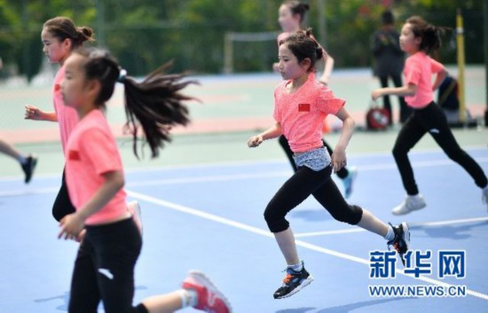 ↑小運(yùn)動(dòng)員們參加體能測試。新華社記者郭程攝