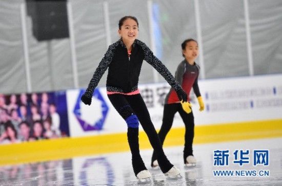 ↑小運(yùn)動(dòng)員們?cè)跍y試中。新華社記者郭程攝