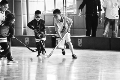 穿著普通運動鞋在旱地上也能打“冰球”?沒錯。在北京市冰球運動協(xié)會的推動下,世界頂級冰球聯(lián)盟NHL(北美職業(yè)冰球聯(lián)賽)日前在京啟動“NHL旱地冰球項目”,京城4所小學(xué)的師生率先接受培訓(xùn),并參加了比賽,孩子們在場上打得不亦樂乎。