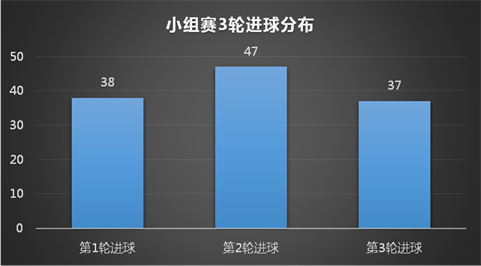 本屆世界杯小組賽共打入了122粒進球,場均2.54粒入球,三輪的進球分別是:38、47、37。顯然,小組賽的第2輪成為小組出線的關鍵性戰(zhàn)役,打入了3輪中最多進球,而“各懷鬼胎”的第3輪,各隊顯得“無心戀戰(zhàn)”。