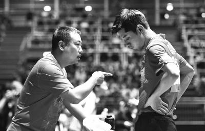 劉國(guó)梁在指導(dǎo)張繼科(資料圖)。新華社發(fā)