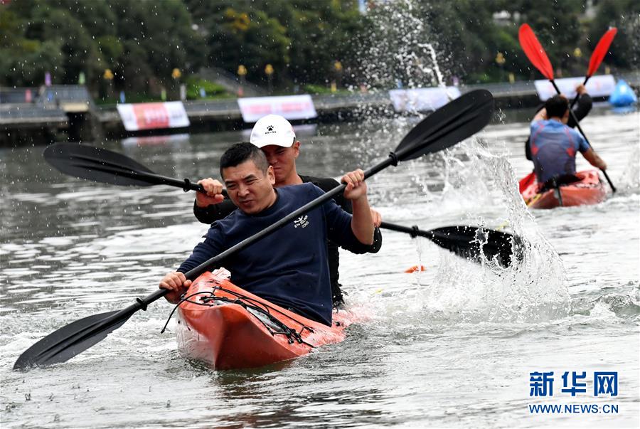 ↑11月16日,皮劃艇接力賽選手在比賽中。 當(dāng)日,2018年福建將樂皮劃艇趣味賽在將樂縣金溪河開賽。本次比賽設(shè)皮劃艇拔河、皮劃艇接力、槳板競渡3個項目,吸引了福建、吉林等國內(nèi)120名選手參與。 新華社記者彭張青攝