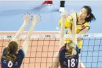 當(dāng)?shù)貢r間1月10日,瓦基弗銀行隊球員朱婷(后)在比賽中扣球。 ……