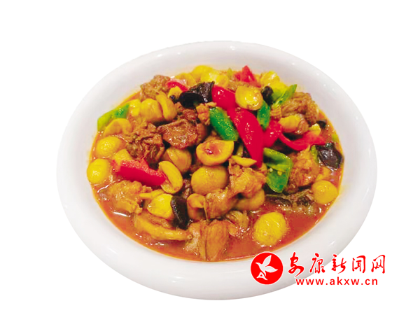 這道特色菜是把散養(yǎng)土雞洗凈剁成小塊,剝好板栗,在鍋里放菜籽油燒紅,加入少許干辣椒、花椒、豆豉炒香,再放入雞塊,大火煸炒變色,調(diào)入生抽、少許耗油、冰糖炒勻,汆入沒(méi)過(guò)雞塊的清水燒開(kāi),再放入板栗,火燜15—20分鐘,放入青紅椒調(diào)色,收汁裝盤(pán)。這道菜雞肉鮮美,板栗香甜,汁濃醇厚,色澤紅亮,真是吃貨們的口福。