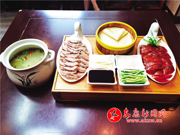 美味故事的烤鴨是我每次宴請(qǐng)親朋必點(diǎn)的一道菜,鴨子原材料用的是北京填鴨,具有填食時(shí)間短、育肥快、肥瘦分明、皮下脂肪厚、鮮嫩適度、不腥不酸等特點(diǎn),是制作烤鴨的上等原料,在制作方法上采取“明廚亮灶”方式,并根據(jù)陜南人的口味,搭配上各種秘制佐料,烤制黃亮,皮質(zhì)酥脆,肉質(zhì)細(xì)嫩,配上果醬、蔥絲、黃瓜絲卷餅,吃起來(lái)味道醇厚,肥而不膩,口舌生香是一道不可錯(cuò)過(guò)的舌尖美味。