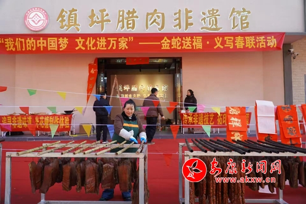 灌香腸、熏臘肉,拓祝福、寫春聯(lián)……1月5日,“鎮(zhèn)坪縣臘肉節(jié)”拉開帷幕,一大早,陜西省省級非物質(zhì)文化遺產(chǎn)生產(chǎn)性保護(hù)示范基地“鎮(zhèn)坪臘肉腌制技藝”非遺工坊——鎮(zhèn)坪縣漢巴食品有限公司門前支起了巨型大鐵鍋,燉上了500斤的臘肉、臘排、臘豬蹄和香菇、竹筍、干洋芋等輔料。鎮(zhèn)坪臘肉歷史悠久,在數(shù)百年的傳承中形成了獨(dú)特的制作工藝與文化內(nèi)涵。2013年9月11日“鎮(zhèn)坪臘肉腌制技藝”列入陜西省第四批非物質(zhì)文化遺產(chǎn)名錄。而鎮(zhèn)坪臘肉腌制非遺工坊更是被陜西省文化和旅游廳、陜西省原扶貧開發(fā)辦公室認(rèn)定為陜西省第一批省級非遺扶貧就業(yè)工坊。(記者 張喬)