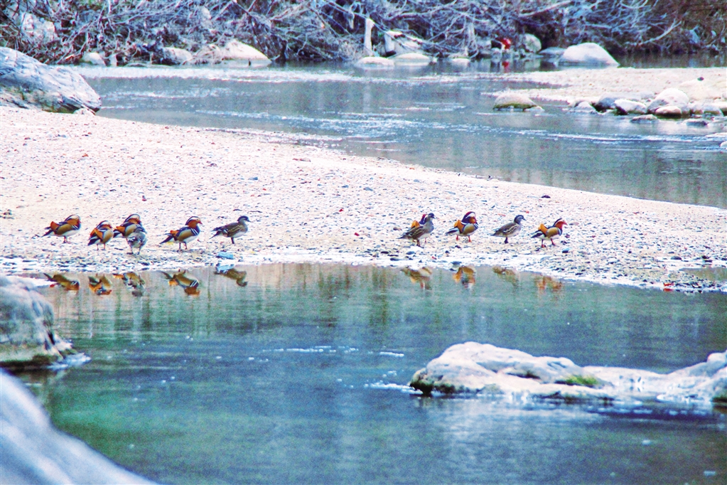 □ 楊繼斌周末,我照例在河邊拍朱鹮,偶遇一起打羽毛球的好友楊林。“攝影家,我們院子后面河里有一群鴛鴦,好看得很,你不去拍幾張美照!彼蛉さ卣f道!皩庩儭