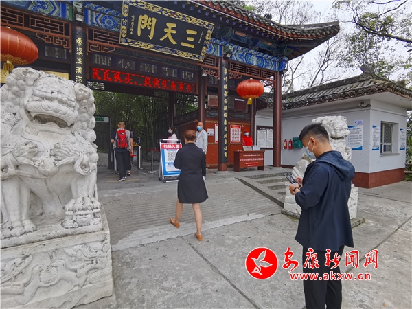 部分志愿者在志愿服務(wù)驛站為游客朋友提供咨詢服務(wù)、同時備有普通應(yīng)急藥品,清涼油、藿香正氣水等防暑降溫物品供游客適用。一旁的工作人員在景區(qū)出入口引導(dǎo)游客配合測溫、查驗健康碼、掃場地碼、異地游客查驗48小時核酸陰性證明等,用實際行動助力全國文明城市創(chuàng)建。