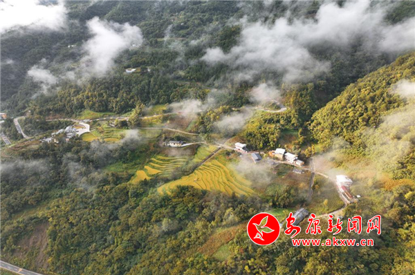 大湖溪位于鎮(zhèn)坪縣城關(guān)鎮(zhèn)友誼村,距離縣城大約半小時(shí)車程。沿207省道順南江河而下,穿過(guò)南江湖大壩就到了谷口。一條嶄新的柏油馬路沿溪流伸向大山深處,茂密的森林覆蓋著山巒,星星點(diǎn)點(diǎn)的農(nóng)舍、民宿集群和土地,若隱若現(xiàn)地掩映在云霧繚繞的群山之間,許多保存完整的巴山古老傳統(tǒng)民居石板屋,炊煙裊裊,與淡淡的晨霧相互交織,構(gòu)成了一幅渾然天成的水墨畫(huà)卷。放飛手中的無(wú)人機(jī),我貪婪地捕捉這一幅幅夢(mèng)幻般的景致。