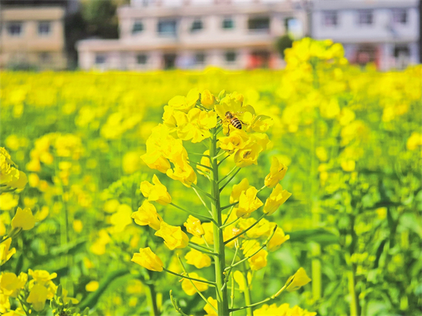 春暖花開,旬陽市仁河口鎮(zhèn)水泉坪千畝油菜花海競相綻放,慕名而來的游客們在觀光步道上觀光散步,三五伙伴一起拍照打卡、合唱民歌,欣賞高山出平川的獨特自然風光。