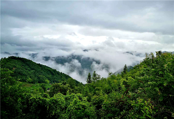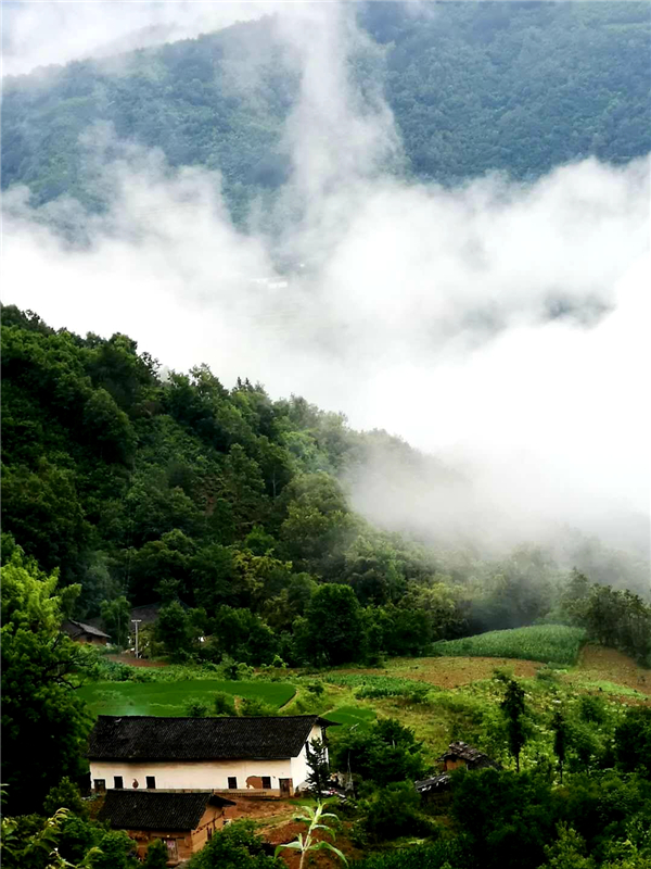 小橋,山澗的溪流;田園,吃草的耕牛;花草,池塘的荷花......一邊淋著淅淅瀝瀝如發(fā)如絲的毛毛細(xì)雨,一邊在薄霧朦朧中散步,置身在這天然氧吧中,看天看地看山看水看滿山云霧繚繞,看自然和諧之美,看群山簇?fù)砦矣趹驯е,空曠靜謐中汲取一塵不染的力量與信念。極目所致,思緒萬千,腦海里寄存的是古人話語“非淡泊無以明志,非寧靜無以致遠(yuǎn)”,恐怕也只能是綠水青山中來實(shí)現(xiàn)自己的理想與愿望吧!