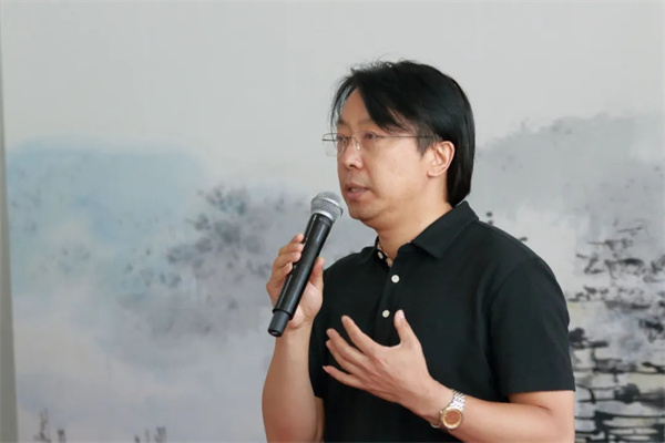 于洋在致辭中表示,“王福元先生的作品之所以被觀者所認(rèn)同,被畫壇所稱道,正是源于他對藝術(shù)的執(zhí)著態(tài)度,及其作品顯現(xiàn)出的鮮明藝術(shù)特色和濃郁的個(gè)人風(fēng)格。其作品的個(gè)人特色主要體現(xiàn)在三個(gè)方面:其一,王福元先生長于色彩,并獨(dú)創(chuàng)‘幻彩’畫法。他不囿于傳統(tǒng)山水畫色彩的固有程式,其作品色彩鮮活、生動(dòng)清透,筆下的江南山水玲瓏剔透、氤氳朦朧,同時(shí)色彩絢爛,極具觀賞性,作品色彩張力和視覺沖擊力強(qiáng);其二,王福元先生的山水畫具有綜合跨界性,借鑒了繪畫領(lǐng)域外其他藝術(shù)門類的風(fēng)格。王福元先生長于音律,能演奏笛、蕭等樂器,因此他的山水畫有以音律入畫、注重意蘊(yùn)表達(dá)的特點(diǎn),具有很強(qiáng)的節(jié)奏感和律動(dòng)感。其三,他的山水畫具有很強(qiáng)的筆墨、色彩、圖式的個(gè)人特點(diǎn)。與北方山水不同,江南山水因其獨(dú)特的地域性,具有一派平遠(yuǎn)的景象。他把個(gè)人思考和表現(xiàn)風(fēng)格化育在清透的江南文人水鄉(xiāng)氣象之中,在承續(xù)傳統(tǒng)文脈的同時(shí)也顯現(xiàn)了地域文化性格,這是十分可貴的。正因?yàn)檫@三個(gè)方面的特點(diǎn),我覺得王福元先生筆下的江南山水既是南派山水畫自古以來變遷中的一種發(fā)展,也是他通過自身的綜合思考和知行合一的積淀所衍生出來的個(gè)人風(fēng)格。”。ehN安康新聞網(wǎng)