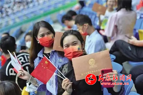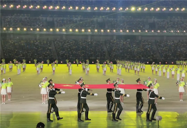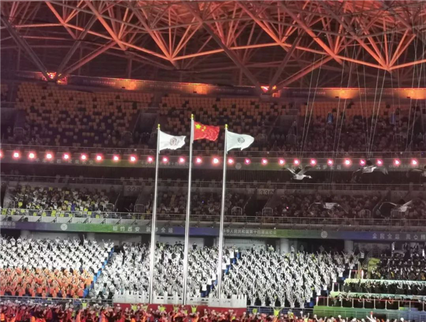 隨后,五星紅旗冉冉升起,6萬人齊聲唱國歌。“起來,不愿做奴隸的人們,把我們的血肉,筑成我們新的長城……”當這首從小根植在我們腦海中的歌曲在奧體中心上空飄揚,場面十分壯觀,這一刻我不禁熱淚盈眶!第一次參加如此壯觀的升旗儀式,第一次近距離參加如此龐大的體育盛會,內心頃刻間升騰起無比強大的民族自豪感,真切感受到祖國的繁榮強大、團結富強,越發(fā)覺得我們能夠生在長在偉大的中國,是多么自豪、多么驕傲!能夠生活在這個繁榮昌盛的時代,是多么幸運、多么幸福!