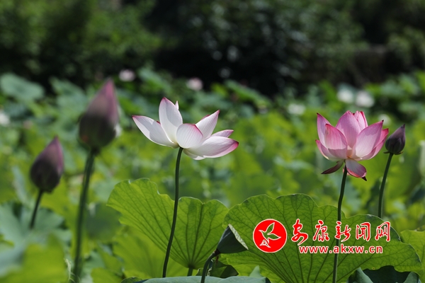 夏日里,荷花滿塘,風(fēng)姿綽約,撩人眼目。你看,荷池里的碧葉挨挨擠擠,接天映日。池中荷花千姿百態(tài),盛放的花朵枕波而臥溫婉可人,嫩黃的蓮篷潔凈無瑕嬌羞惹人,飽脹的花苞好似隨時(shí)蓬勃破裂。