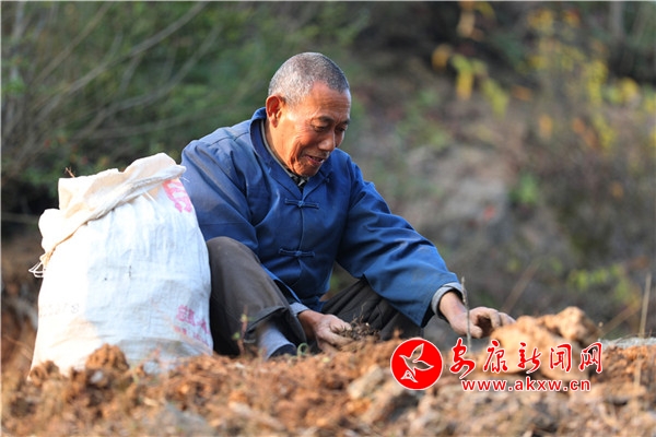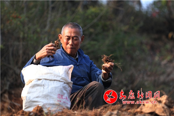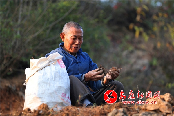 初冬季節(jié),旬陽(yáng)縣甘溪鎮(zhèn)袁灣村尚未褪去深秋的斑斕,山山嶺嶺依舊五彩繽紛景色宜人。住在山腰的楊孝景老漢,趁著冬陽(yáng)溫潤(rùn)的日子,開(kāi)挖收獲邊角地里的白術(shù)藥材。d2G安康新聞網(wǎng)