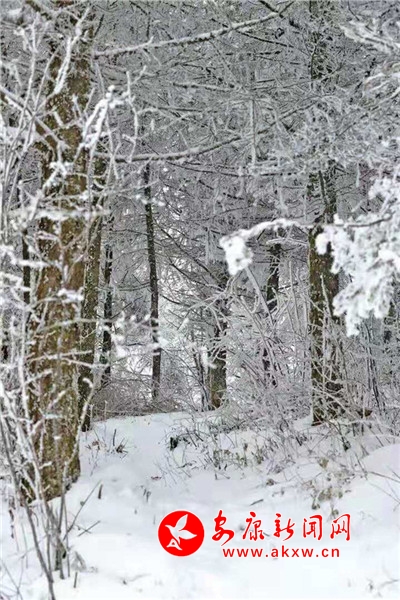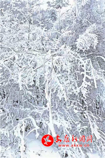 在青松的針葉尖上,在柔韌的枝條末梢,冰凌、霧凇、雪柳、樹掛……鋪天蓋地,肆意飛揚。憑欄遠眺,萬千輕羽蔓延鋪陳,寒山枯色被這天地間的精靈喚醒?丈讲灰娙,但聞雪落聲。